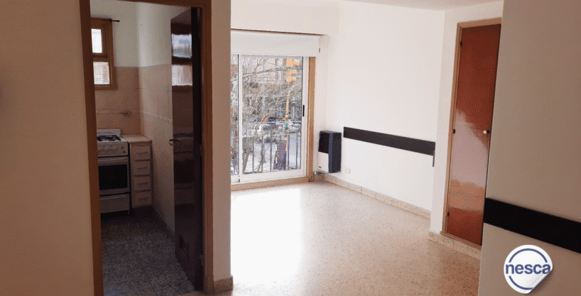El departamento presenta un diseño funcional que incluye un ambiente luminoso con vista al frente, equipado con un placard y estufa a tiro balanceado, lo que garantiza un ambiente cálido durante el invierno. La cocina separada cuenta con una mesada de granito, mueble bajo mesada y alacena completa, así como una cocina a gas y un calefón, asegurando que todos los electrodomésticos necesarios estén disponibles para su uso diario.