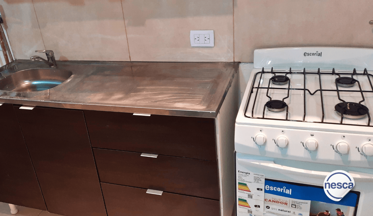 El PH se encuentra en un ambiente interno, accesible a través de un pasillo. Al ingresar, se puede apreciar un amplio living que cuenta con calefactor y placard, ideal para el almacenamiento. La cocina es separada y está equipada con una moderna mesada de acero inoxidable, grifería monocomando, cocina a gas, extractor de aire, bajo mesada y alacena. Además, dispone de un termotanque eléctrico y conexión para lavarropas, brindando comodidad y funcionalidad.