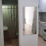 El baño es completo y cuenta con ducha, ofreciendo todas las comodidades necesarias.